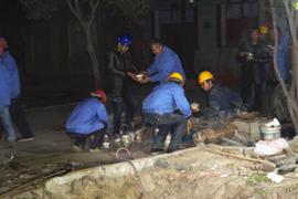 為了配合人民西路(八號(hào)路口處)市政道路建設(shè),襄陽中環(huán)公司于10月30日上午9:00開始對(duì)該段管道進(jìn)行停水搶修、改造。工程公司、樊城管網(wǎng)、供水發(fā)展部等部門和單位集中力量組成70人的施工隊(duì)伍分別在4個(gè)作業(yè)點(diǎn)同時(shí)展開奮戰(zhàn)。為了能在48小時(shí)內(nèi)恢復(fù)供水,將停水對(duì)沿線人民群眾的生活影響降到最低,各作業(yè)班組從白天到深夜,連續(xù)施工10多個(gè)小時(shí)沒有停歇。