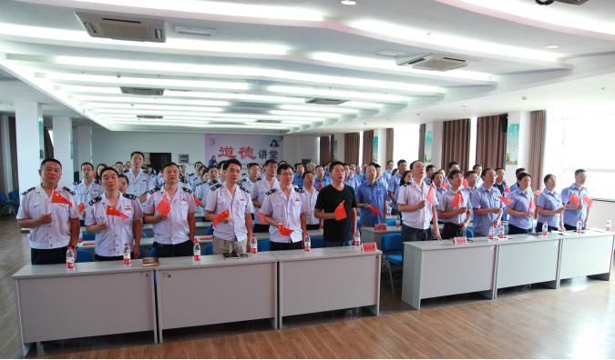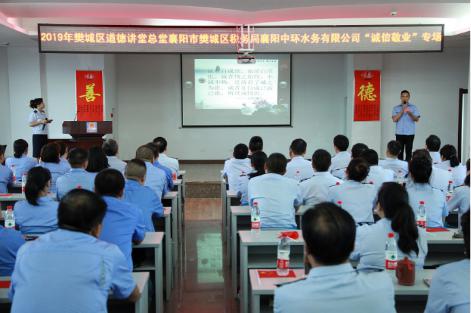 7月25日下午,根據(jù)襄陽市委宣傳部、市文明辦的要求,襄陽中環(huán)水務(wù)有限公司與樊城稅務(wù)局聯(lián)合舉辦了一期主題為“誠信敬業(yè)”的道德講堂活動。襄陽中環(huán)公司紀(jì)委書記、副總經(jīng)理焦為民;財(cái)務(wù)總監(jiān)王平;工會主席徐玲,以及公司各基層單位、機(jī)關(guān)部室代表參加了活動。