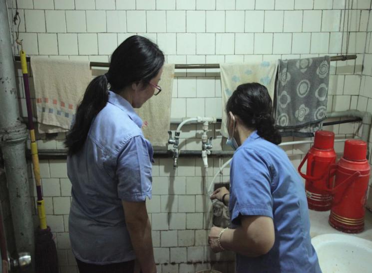 為深入貫徹落實(shí)“我為群眾辦實(shí)事”的要求,把好水質(zhì)“安全關(guān)”,打消市民心中的疑問,水質(zhì)檢測(cè)中心的“水質(zhì)衛(wèi)士”們?cè)谧龊萌粘z測(cè)工作的同時(shí),在中心主任吳非、書記劉霞的帶領(lǐng)下于16日下午走進(jìn)小區(qū),敲開用戶家門,深入市民家中為市民現(xiàn)場(chǎng)檢測(cè)“龍頭水”水質(zhì)。每家檢測(cè)完畢,還為用戶講解渾濁度國家標(biāo)準(zhǔn)的限制是多少,現(xiàn)場(chǎng)檢測(cè)的是多少。